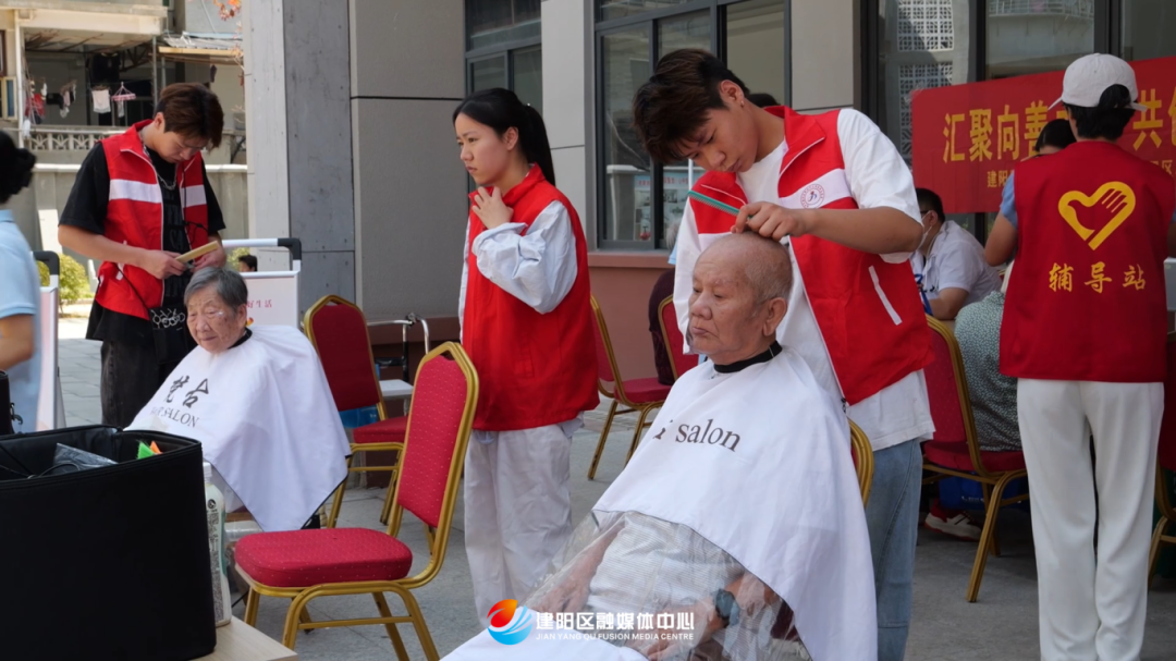 活動現場,我區多家公益社會組織還為老人提供了義診、免費理發、手指操互動等暖心服務。(張高鷺)