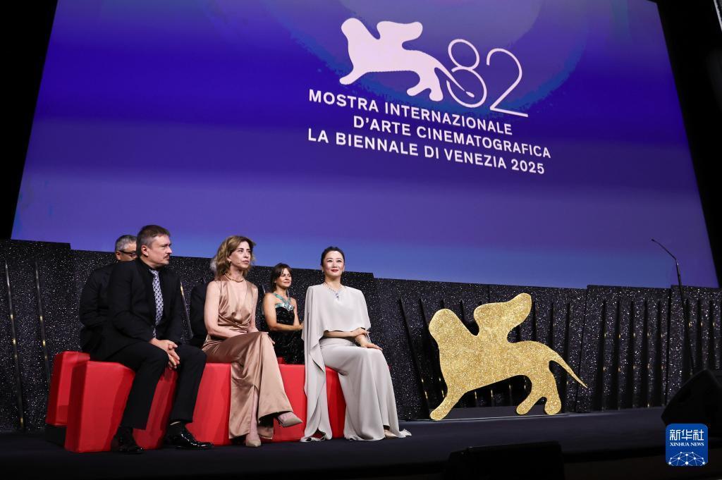9月6日,在意大利威尼斯,主競(jìng)賽單元評(píng)委出席閉幕式。 第82屆威尼斯國(guó)際電影節(jié)6日晚在意大利水城威尼斯的利多島落下帷幕。 新華社記者 李京 攝