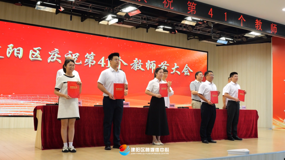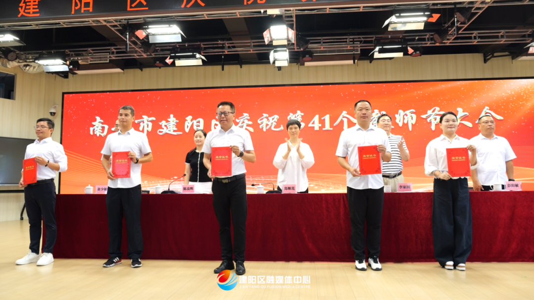 會上宣讀了建陽區2024-2025學年表現突出的名校(園)長、模范教師、師德標兵通報表揚名單;與會領導為獲通報表揚的教師代表頒發獎狀;獲表揚教師代表上臺發言。