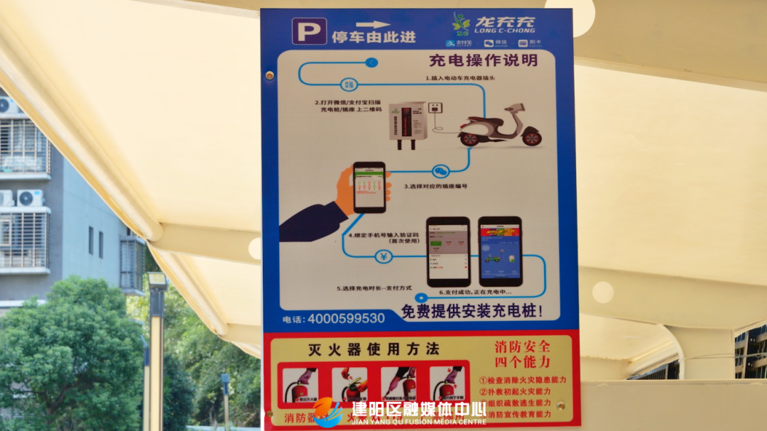 御景灣小區物業服務中心項目經理石志華:“原來小區的電動車1000多輛,都是停在架空層,有的時候充電樁不夠用了,到處飛線充電。城管有為民辦實事的項目,從開始立項到建設,城管部門也是積極配合,在十幾天的時間內就把棚子搭好,現在業主充電方便了,消除了安全隱患。” 建陽區城市管理和綜合執法局積極協調住建、消防、自然資源、供電等部門建立聯動機制,聯合審查候選小區建設可行性,按照“居民需求迫切、符合建設標準”的原則,為每個目標小區量身定制“一區一策”建設方案。截至目前,共在碧桂園、御景灣、建發和鳴、建發璽院、三迪·楓丹雅筑、云谷小區等6個小區,增設400個充電端口,緩解了居民的充電難題。