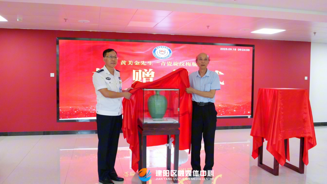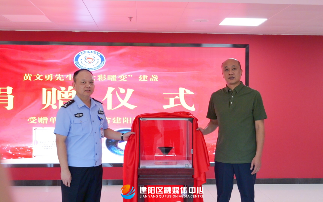 黃美金、黃文勇向福建省建陽監(jiān)獄無償捐贈了《金油滴盞》《青瓷旋紋梅瓶》《七彩曜變盞》作品,將在建陽監(jiān)獄文化教育基地展出。
