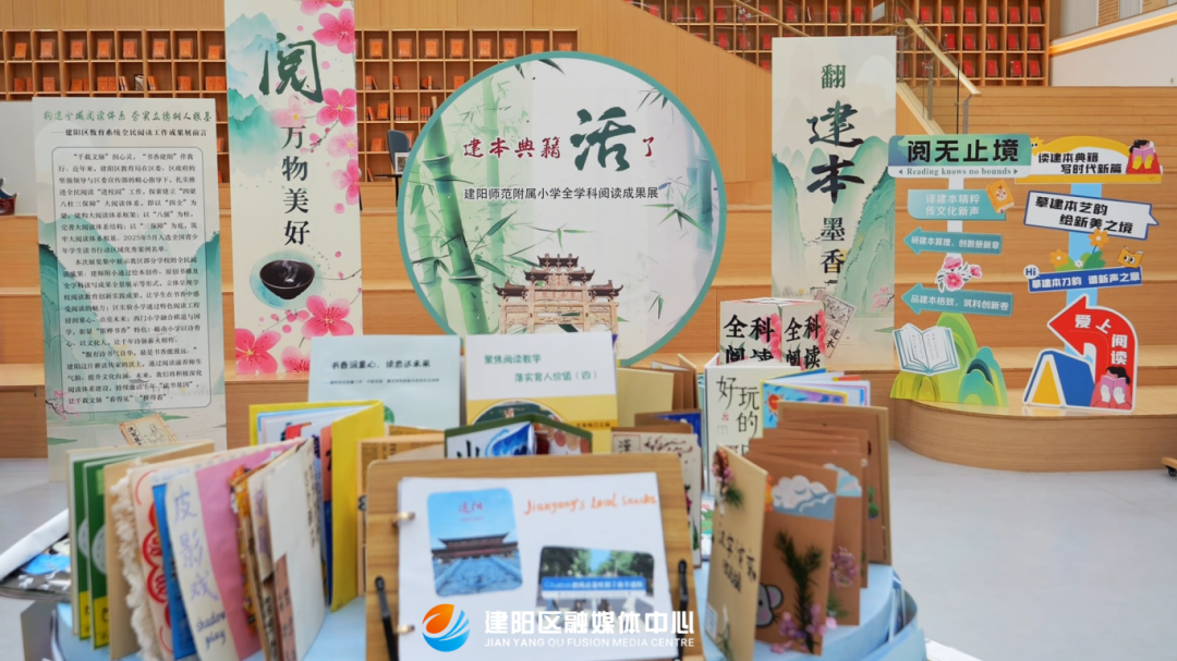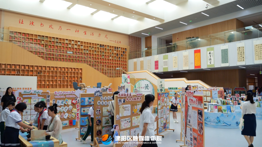 本次惠民書市及閱讀成果展亮點十足。其中,“書香建陽”建設成果展區以“建本典籍活了——翻建本墨香,閱萬物美好”為主題。展區內,建師附小、實驗小學、西門小學、橋南小學的全學科閱讀成果展板、原創書攤等有序陳列。小講解員們的生動講解,讓各校閱讀教育創新實踐成果更加鮮活、立體地呈現在大家面前。