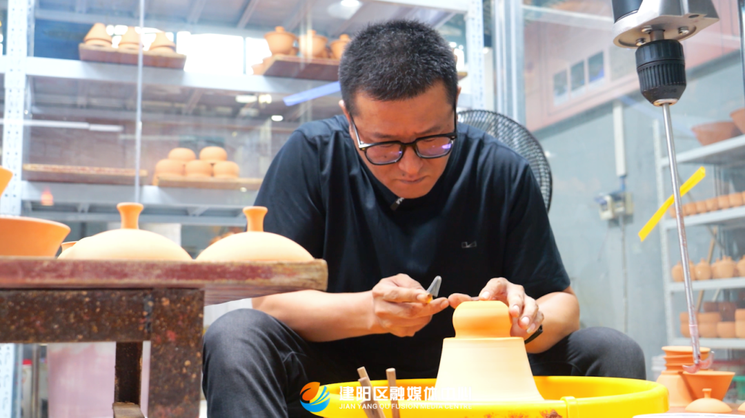 建窯建盞制作技藝市級代表性傳承人暨子文:“在中秋佳節來臨之際,推出了這兩款新品。寓意是團團圓圓過中秋,所以我們推出了這兩款對杯,取名《瑞秋》。”(黃子榮 劉劍鋒 郎男 王周筠) |