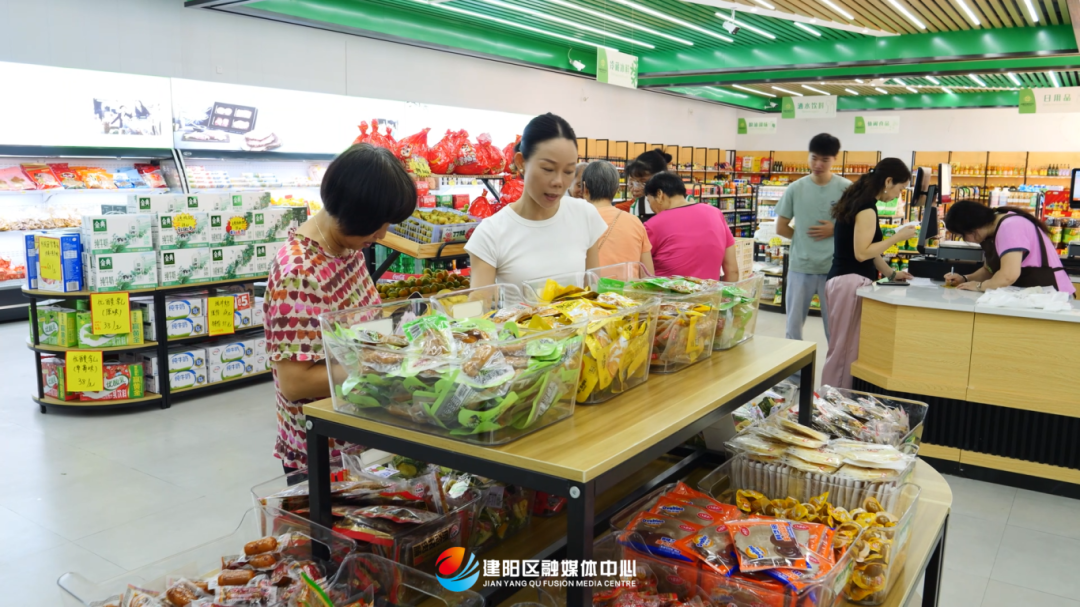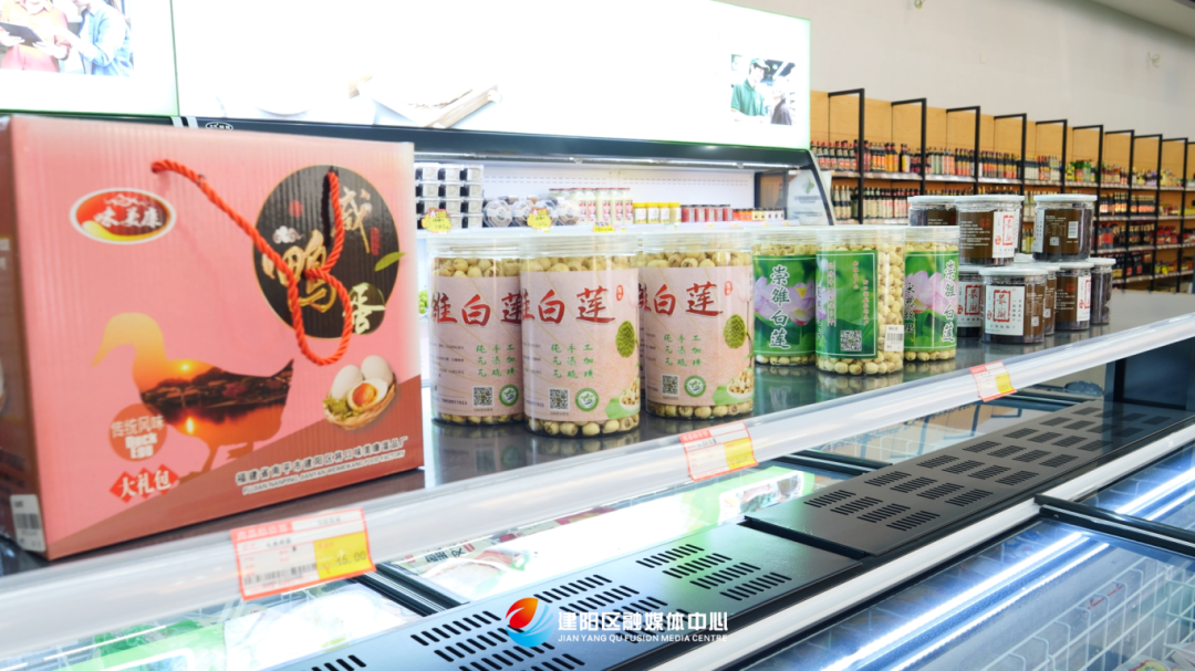 線下超市內區塊分明,有休閑食品、酒水飲料、糧油調味、農副產品、武夷味·好食材等專區,豐富的貨品吸引不少群眾前來購物體驗。值得一提的是,線下超市內還專設了“武夷”品牌產品專區,主要銷售建陽區小湖“三寶”(水仙茶、紅糖、楊梅干)、麻沙樵溪粉干,順昌罐蛋,浦城桂花茶等“武夷”品牌產品。