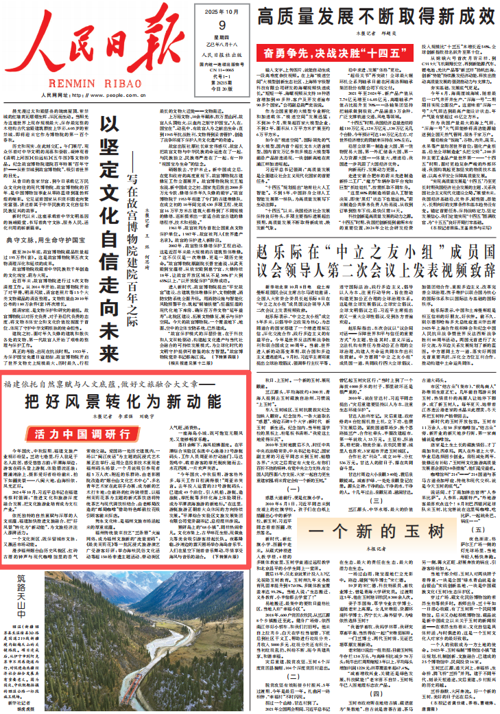 10月9日,人民日報頭版“活力中國調研行”欄目刊發報道《把好風景轉化為新動能》,點贊福建省依托獨特的自然稟賦與深厚的人文底蘊,加快推進文旅融合,把“好風景”轉化為“新動能”,為文旅經濟注入澎湃活力。