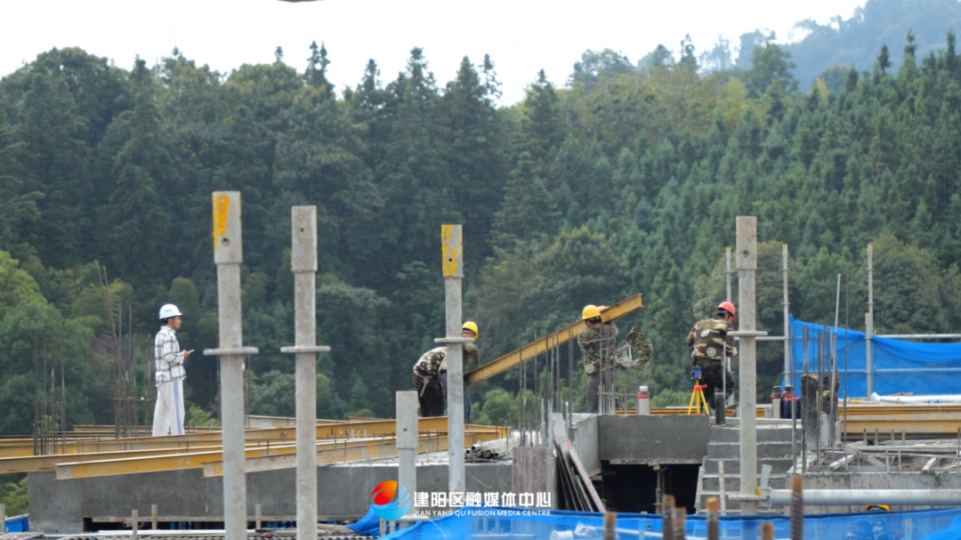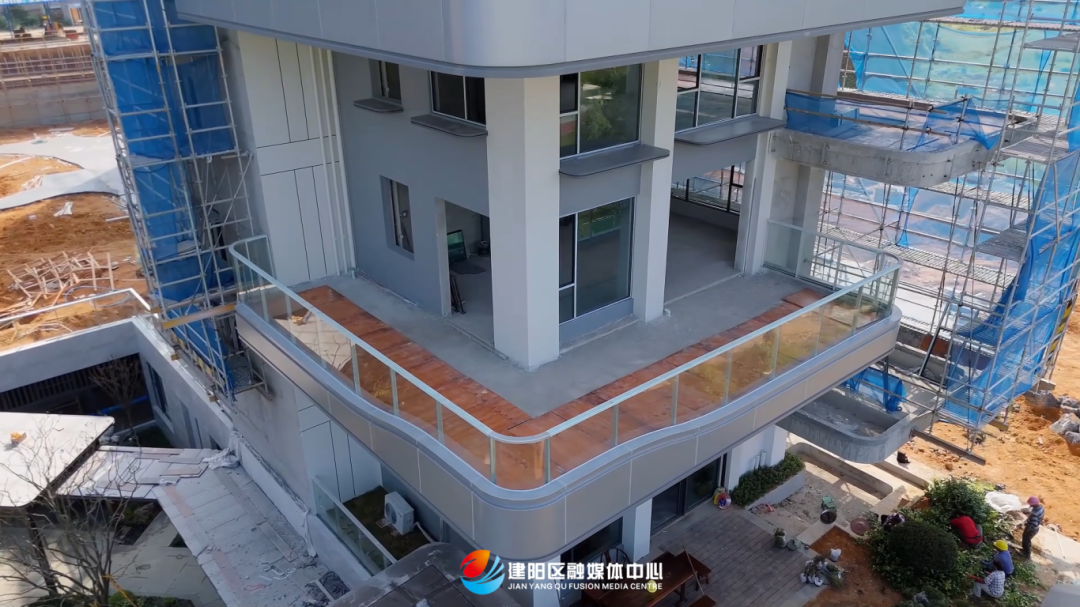 武夷悅·藍泊居開發公司副總經理游翔:“目前我們面前的七號樓和九號樓都已經完成了主體的封頂工作,八號樓和十號樓也建設到了11層,總共是16層,預計到11月底完成樣板房開放,后續的一些樓棟的建設也已經完成了樁基的施工,很快的就會進行地下室跟地面主體的施工。”