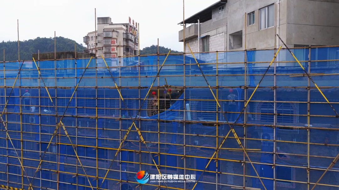 老舊小區改造是關乎民生福祉的重要工程,自2024年以來,建陽童游街道持續推進老舊小區改造項目,總投資約2.359億元,惠及轄區居民6904戶,切實增強居民的獲得感、幸福感與安全感。 10月14日,在童游街道老舊小區改造(一期)項目現場,東橋東路沿路的建筑外墻上,一排排腳手架已搭建整齊,工人們正在對破損的墻皮進行清理,消除部分建筑外墻瓷磚、舊窗脫落安全隱患。