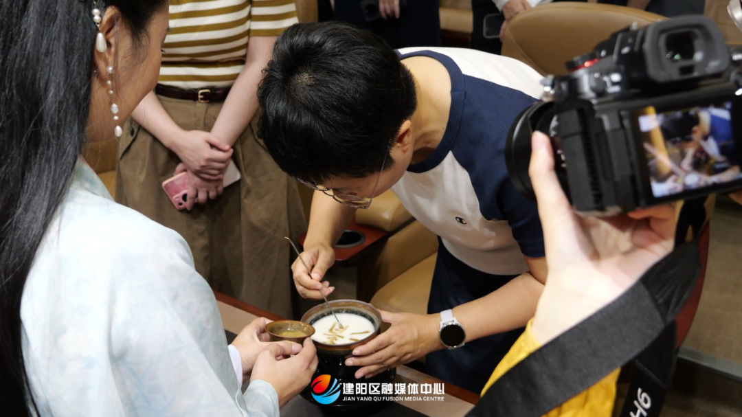 蒙曼還觀看了宋代點茶表演,體驗了中式拉花——在茶湯上“作畫”。