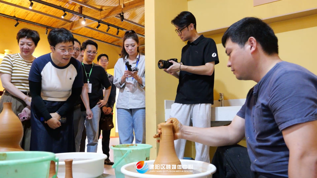 蒙曼:“現在我們把一張白紙覆蓋上去,那么這是一個擦,擦的原則是什么,擦不離紙,我這個擦子始終沒有離開紙面。” 蒙曼:“整個工藝流程其實非常復雜,我們看到的只是最后一道程序,但是之前有非常重要的選本、校勘等程序,包括木材挑選、雕刻這些東西。文明能一直綿延下來是不容易的,這里匯聚了多方面的力量。” 來到建盞文創園,蒙曼觀摩了建盞手工拉坯,與匠人們親切交談,了解建盞燒制技藝。在中國建盞文化展示中心,蒙曼通過參觀宋風古韻建盞魂、巧奪天工建盞藝、古韻新風窯火傳、再創輝煌復興路四大板塊,詳細了解了建盞的前世今生。建盞釉面的微觀世界、建盞釉面絲綢、創意飾品等,都讓她不時贊嘆建盞“入窯一色,出窯萬彩”的魅力。