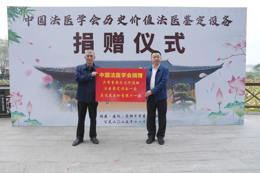 當天,中國工程院院士叢斌一行還前往建陽區崇雒鄉參觀宋慈紀念園,拜謁宋慈墓。中國法醫學會代表向宋慈紀念園捐贈了一套具有重要歷史價值的法醫鑒定設備,以及一張歷史展品珍貴照片;建陽區領導向中國法醫學會代表頒發捐贈證書。