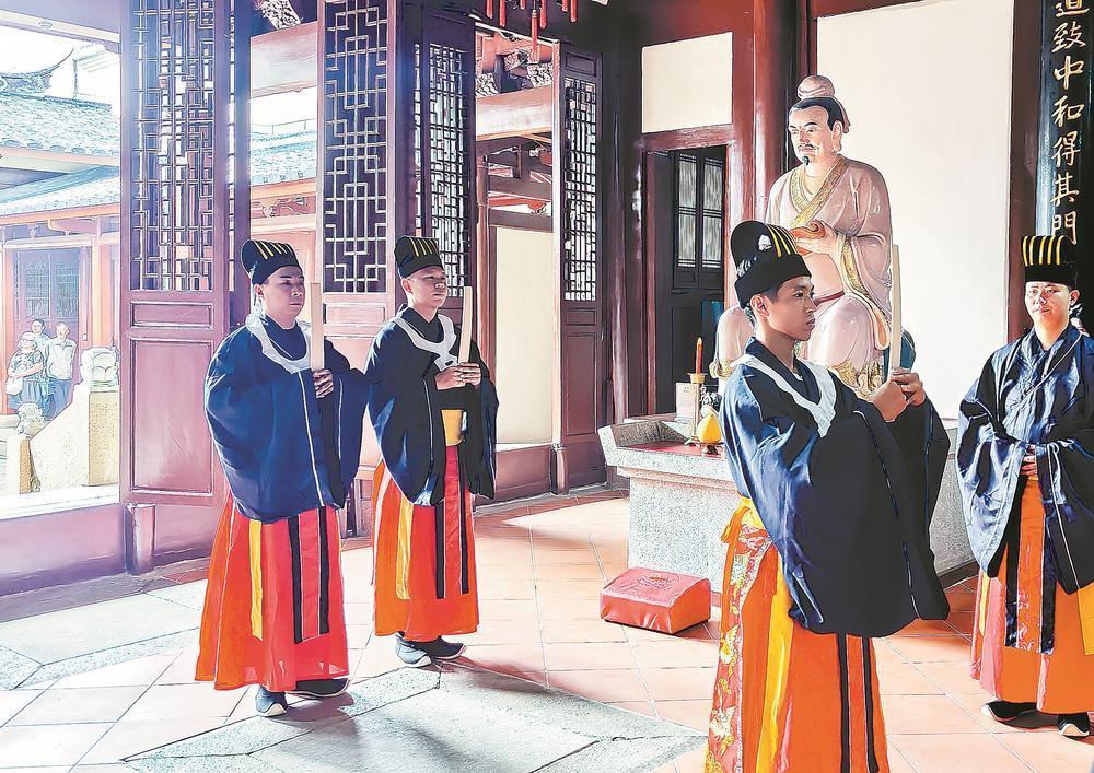 10月底,“兩岸同心?文脈同源”乙巳年榕臺聯合祭孔交流活動暨榕臺武術交流會在福州舉辦。在倉山區螺洲鎮孔廟,榕臺青年身著傳統服飾,向孔子像行三獻禮。榕臺青年還通過聆聽儒家文化講座、學習中華武術等活動,感受博大精深的中華傳統文化,增進同胞情誼。福建日報通訊員 陳儀 攝影報道 |