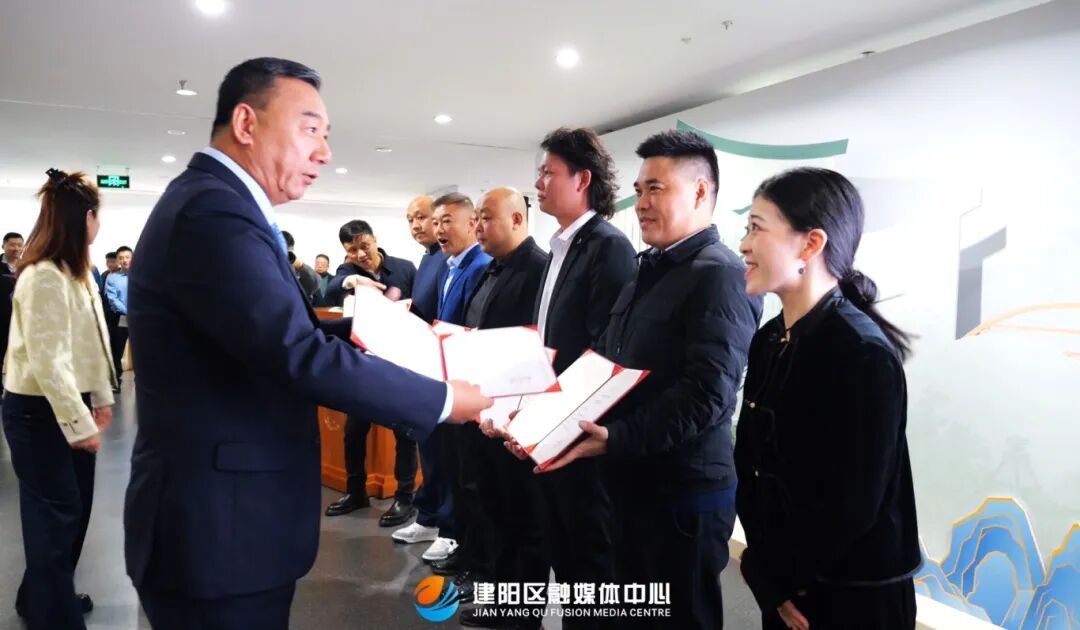 張東剛為南平市建陽區及建盞匠人代表頒發感謝狀與收藏證書,感謝其為豐富校園文化收藏、推動文化傳播所做的貢獻。