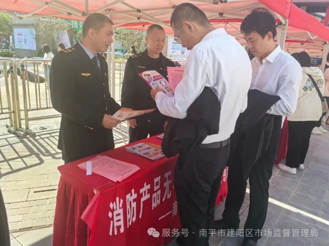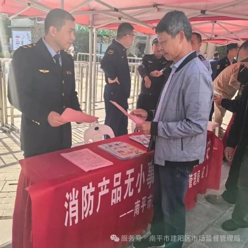 11月7日,南平市建陽區市場監督管理局緊扣“消防宣傳月”活動主題,聯合消防、應急、公安等多部門在建發悅城中心,共同組織開展了以“全民消防、生命至上──安全用火用電”為主題的消防產品科普宣傳教育活動。 活動現場,工作人員通過懸掛宣傳橫幅、設立咨詢臺、發放消防產品知識宣傳冊及消費安全提示單等多種形式,營造了“人人關注消防產品質量安全”的濃厚氛圍。宣傳人員聚焦群眾關切,針對如何辨別滅火器、消防應急燈具、疏散指示標志等常見消防產品的真偽進行了細致講解,向廣大商戶和市民普及識別技巧,有效增強了群眾的自我防范意識。