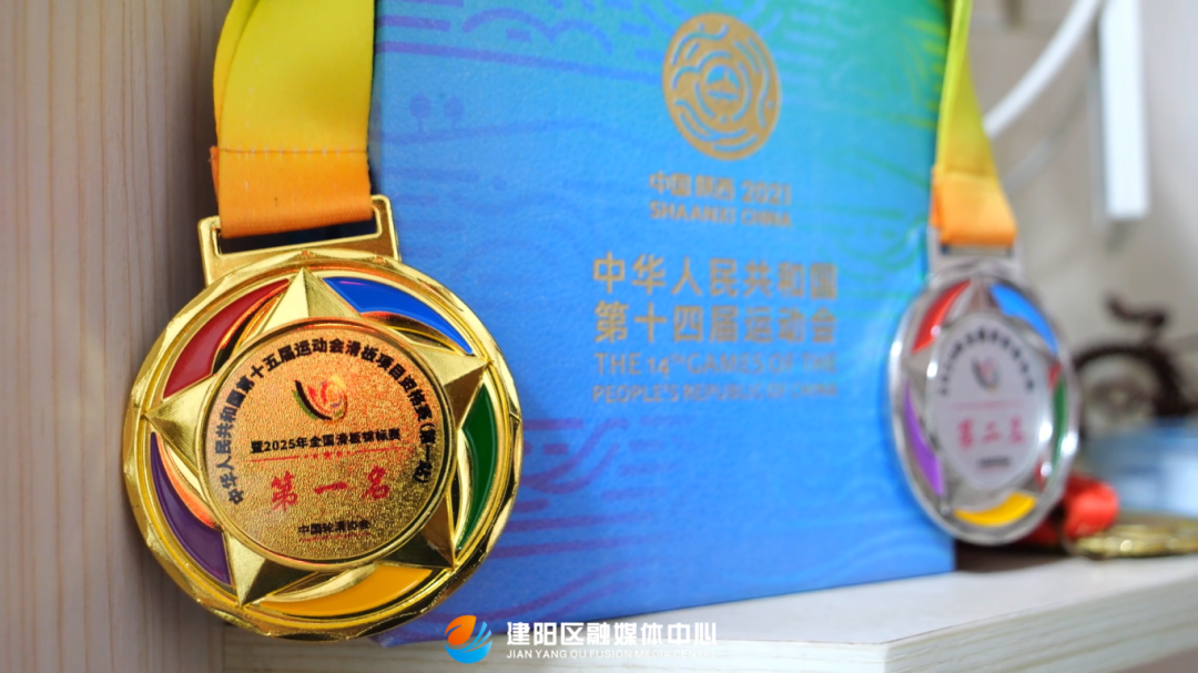 吳博文母親余秋容:“吳博文能代表福建去參加這次的全運會比賽我感到非常榮幸的,希望他以后走得更遠,畢竟沖冠是他最大的夢想,我們都很支持他。希望博文經過這次賽以后繼續努力,然后再為家鄉建陽爭一份榮譽。” 在吳博文家中,他的母親余秋容女士向記者展示了孩子運動生涯的點點滴滴。吳博文出生于2006年,從小就對滑板感興趣,從區內少兒賽事的首枚獎牌,到省級比賽的冠軍證書,再到如今全運會的銅牌——每一份榮譽都記錄著這位建陽少年從街頭滑板愛好者到全國頂尖選手的蛻變之路。