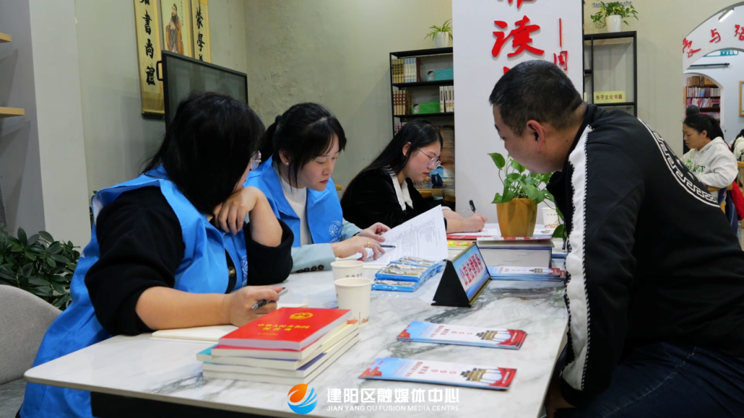 “蒲公英+書吧”普法陣地由區司法局統籌建設,選址于社區、學校、公園、商圈等人流密集區域,力求將法治文化融入市民日常生活。普法陣地以“讓崇文尚讀之地浸潤法治之聲”為理念,統一設計標識風格,配備法律圖書、普法讀物、案例解析、建陽“四張名片”特色文化專柜,聘請“蒲公英普法志愿者”擔任書吧義務導讀員、閱讀推廣人,協助居民查找書籍,為居民解答簡單的法律常識,設置互動體驗區、法律咨詢角等功能區域,打造“可讀、可學、可問”的沉浸式法治宣傳空間。