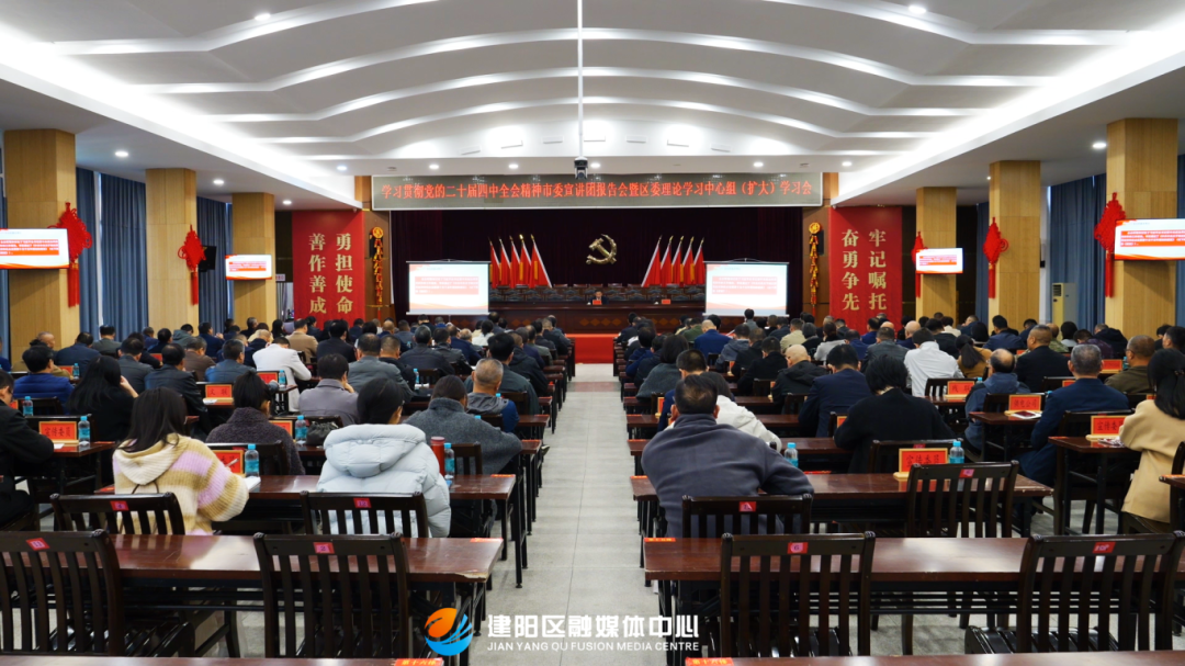 11月19日,學習貫徹黨的二十屆四中全會精神市委宣講團報告會暨區委理論學習中心組(擴大)學習會召開。南平市委宣講團成員,南平市文旅局黨組書記、局長王文謙作宣講報告。建陽區委書記謝啟龍主持報告會。區委副書記、區長王沖,區人大常委會主任鄭立新,區政協主席方丹青出席。