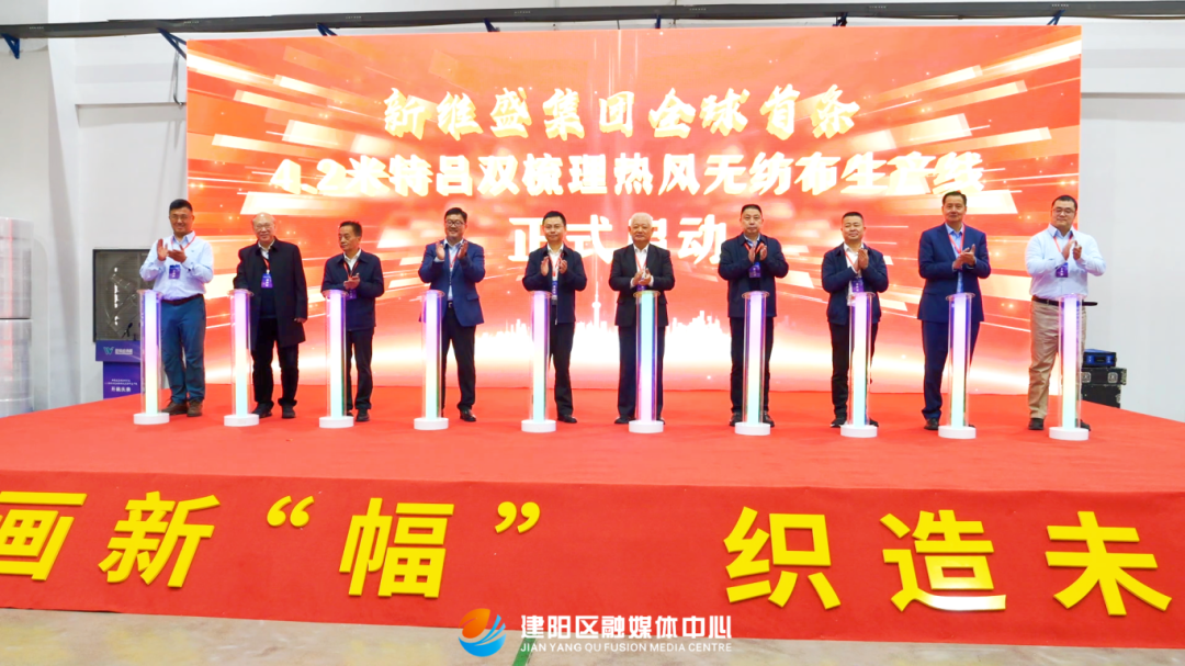 11月18日,全球首條特呂4.2米雙梳理熱風生產線——新維盛集團22號線開機儀式,在建陽經濟開發區新維盛集團二期工廠生產基地舉行。中國造紙學會原理事長、中國造紙協會生活用紙專業委員會主任曹振雷,中國造紙協會生活用紙專業委員會副秘書長、中國制漿造紙研究院副總經理曹寶萍,建陽區區長王沖,天津工業大學教授、博士生導師、天津工業大學國家級雙一流學科非織造材料與技術方向帶頭人錢曉明,東華大學紡織學院研究員、教育部產業用紡織品工程研究中心副主任靳向煜,東華大學紡織學院高級工程師吳海波教授,上海紡織科學研究院有限公司科創中心副主任金平良,建陽區委常委、副區長張華,新維盛集團董事長楊光,市直有關部門負責同志等出席活動。