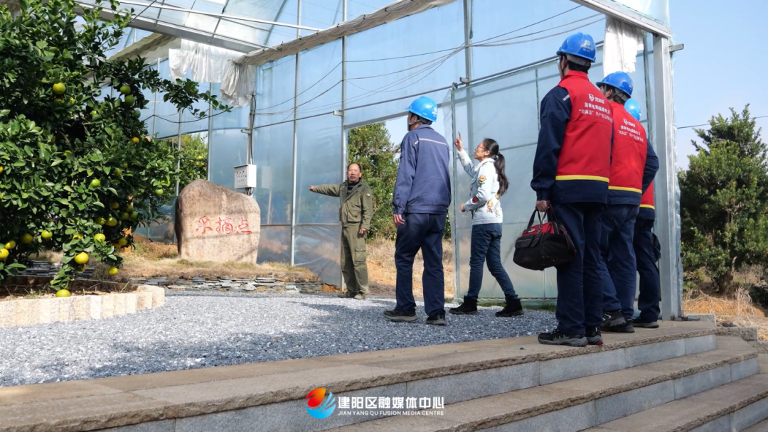 建陽區仁山桔柚生態果園工程主管張永興:“計劃把線路定在那邊,現在這個我們使用起來第一個不安全,第二個不好用。” 國網建陽區供電公司水吉供電所網格長周源華:“可以,要立桿的話你這個場地可以。” 張永興:“沒問題,場地可以隨便使用。”
