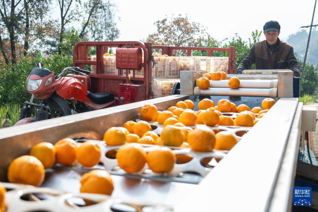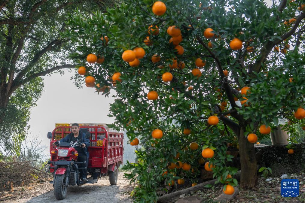 12月11日,在湖北省宜昌市長陽土家族自治縣漁峽口鎮巖松坪村,村民在轉運剛采摘的清江椪柑。 近日,湖北省宜昌市長陽土家族自治縣漁峽口鎮的清江椪柑進入采銷旺季。2024年,全縣清江椪柑種植規模達7萬畝,年產值約5億元。產品銷往全國29個省市,并出口到馬來西亞、加拿大、西亞等國家和地區。清江椪柑已成為當地鄉村振興戰略的支柱產業。 新華社記者 杜子璇 攝
