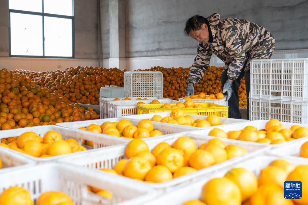 12月11日,在湖北省宜昌市長陽土家族自治縣漁峽口鎮巖松坪村,村民在整理分揀剛采摘的清江椪柑。 近日,湖北省宜昌市長陽土家族自治縣漁峽口鎮的清江椪柑進入采銷旺季。2024年,全縣清江椪柑種植規模達7萬畝,年產值約5億元。產品銷往全國29個省市,并出口到馬來西亞、加拿大、西亞等國家和地區。清江椪柑已成為當地鄉村振興戰略的支柱產業。 新華社記者 杜子璇 攝