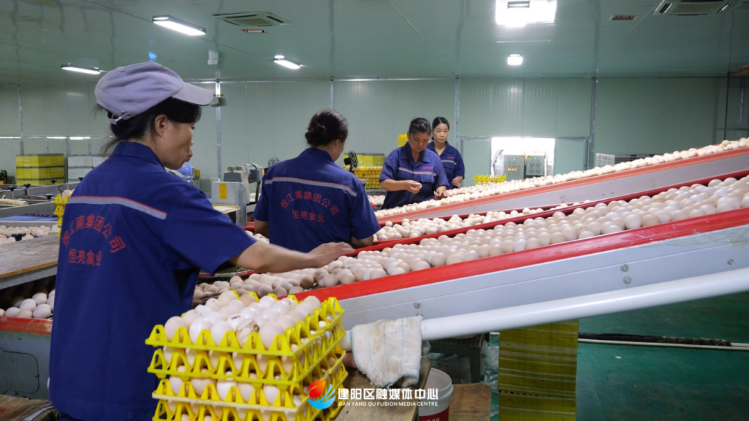 “在家門口上班,老人孩子都顧得上,收入也不少?!奔皫靸龋迕裢趸馉N正給機器人分選好的雞蛋裝箱,臉上滿是笑意。6年前,他和妻子李萍在外打工,收入時好時壞,也無暇顧家。恒亮生態禽業有限公司(以下簡稱“恒亮”)落戶滸洲村后,夫妻倆返鄉成為該公司員工。集蛋庫內的20多名工人也多為本村人,其中不乏王火燦夫婦這樣的返鄉人。 在外務工村民的紛紛回流,源自一枚雞蛋“孵”出的一條共富鏈。 2016年,得知建陽區計劃引進蛋雞養殖項目,滸洲村干部主動對接,多次陪同考察選址,最終以生態優勢留住項目。為破解土地流轉難題,村干部還逐戶上門溝通,制定合理分配方案,將1194畝土地集中流轉給恒亮,并敲定30年租期,每年為村民帶來73萬元的租金收益,村集體也獲得約20萬元的管理費。 同時,滸洲村主動與恒亮對接崗位需求,為村民爭取到42個固定崗位。除了每年向村民發放固定工資200萬元外,恒亮還在村中長期招收臨時工,額外為村民增加33.6萬元收入。此外,滸洲村與恒亮約定,采購原料、銷售有機肥和雞蛋的物流運輸業務,優先交由本村貨車司機承運,年均帶來15萬元直接收益;恒亮日常所需的魚、肉、大米等物資也長期從村民處采購,每年為村民創收37萬元。
