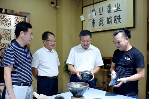 南平市委書記袁毅(右二)調研建陽建盞文化產業發展,南平市委常委、宣傳部長張培棟(左二),建陽區委書記楊新強(左一)陪同調研。(姜法彪攝) 建陽建盞涅槃重生再續輝煌 9月29日至10月3日,規模宏大、活動豐富多彩的專業化、品牌化和國際化的第二屆建窯建盞文化博覽會在我區舉行,“一城一盞話千年”為主題的文博會再次展現了建陽建盞涅槃重生再續輝煌的歷程。 “舉辦建窯建盞文化博覽會,充分彰顯建陽文化底蘊,進一步擴大建盞在全國乃至全世界的影響力,讓建盞文化與時代潮流交相輝映,再煥異彩。”區委書記楊新強說。 保護非遺技藝 傳承工匠精神 千年非遺,震古爍今。建陽建盞創燒于晚唐五代,興盛于兩宋,宋末元初趨于衰落以至停燒,自1979年,中央工藝美院、省科委等組成攻關小組,于1981年研制出仿宋兔毫盞,斷代塵封了700多年的建窯建盞燒制技藝重現光彩。 “區委、區政府高度重視建窯建盞產業發展,對建盞特色文化‘金名片’進行產業布局,注重整體保護,活態傳承,留住建盞文化的根與魂。”區長魏敦盛說。 |